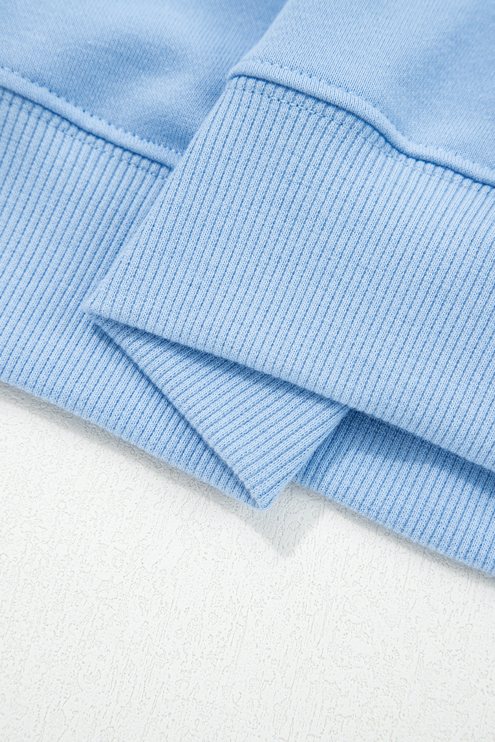 Blue Floral Patchwork Drop Shoulder Pullover and Sweatpants Lounge Set
