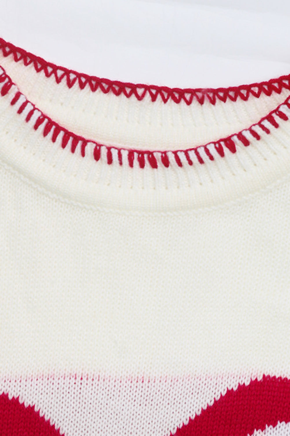 White Bow Pattern Contrast Trim Christmas Loose Graphic Sweater